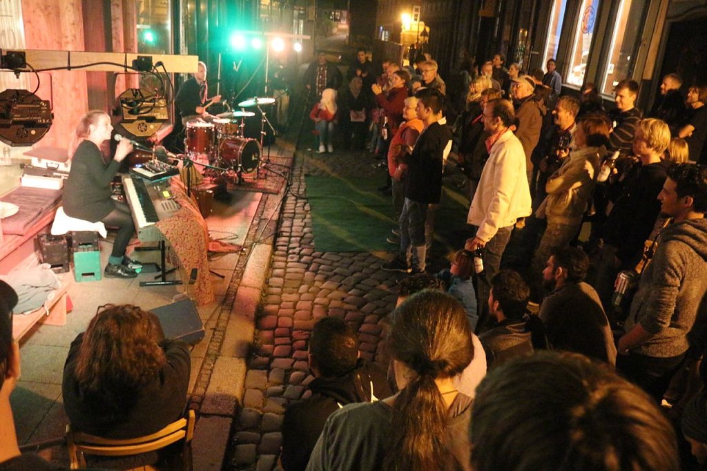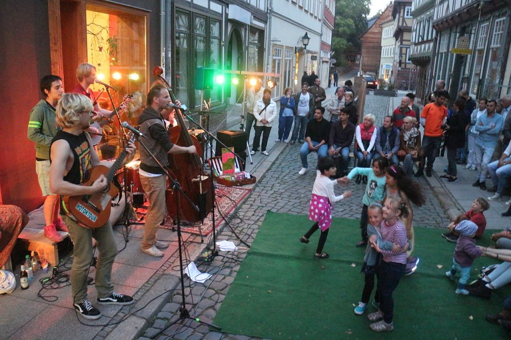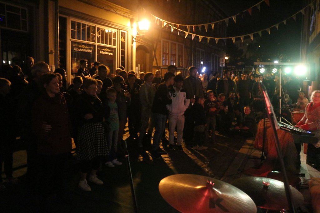 Danach ging man zum gemütlicheren Teil über. Bei Musik von Trykka, Pulsar Trio, Weltkind und einer kurzen Einlage der alten Altendorfer Liedermacherszene kam wieder einmal Leben in die Altstadt. Weltoffen, gemeinsam und friedlich.