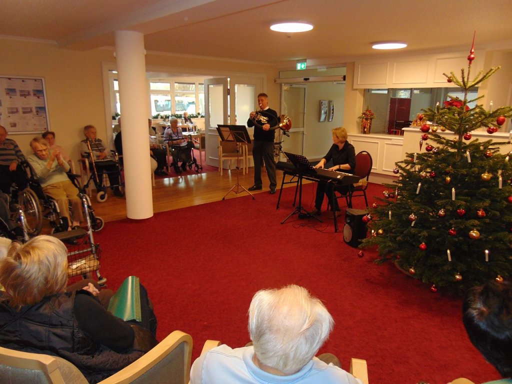 Neben traditionellem Liedgut welches von vielen Anwesenden stimmlich begleitet wurde, ertönten auch klassische Stücke von Brahms, Corelli, Chopin und Tschaikowsky in einem harmonischen Zusammenspiel von Klavier und Horn. Das musikalische Duett überzeugte mit einfühlsamen Melodien und setzte Akzente dort, wo sie hin gehörten. Alles in allem ein gelungenes Weihnachtskonzert für all diejenigen, die sich der klassischen Musik verbunden fühlen.