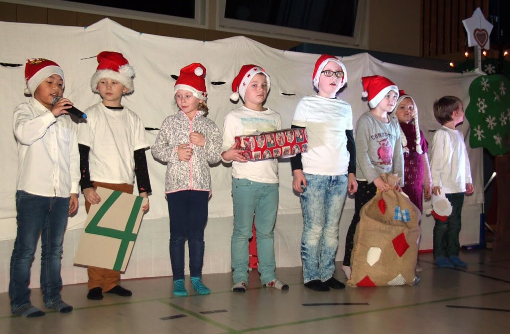 Der Höhepunkt des Weihnachtsmarkts war das Programm, das die Kinder ihren Familien in der Turnhalle zeigten. Seit Wochen schon hatten die Kinder Lieder, Tänze und Gedichte einstudiert und ein weihnachtliches Bühnenbild gestaltet. Für alle war dies eine gelungene Einstimmung auf die Festtage.