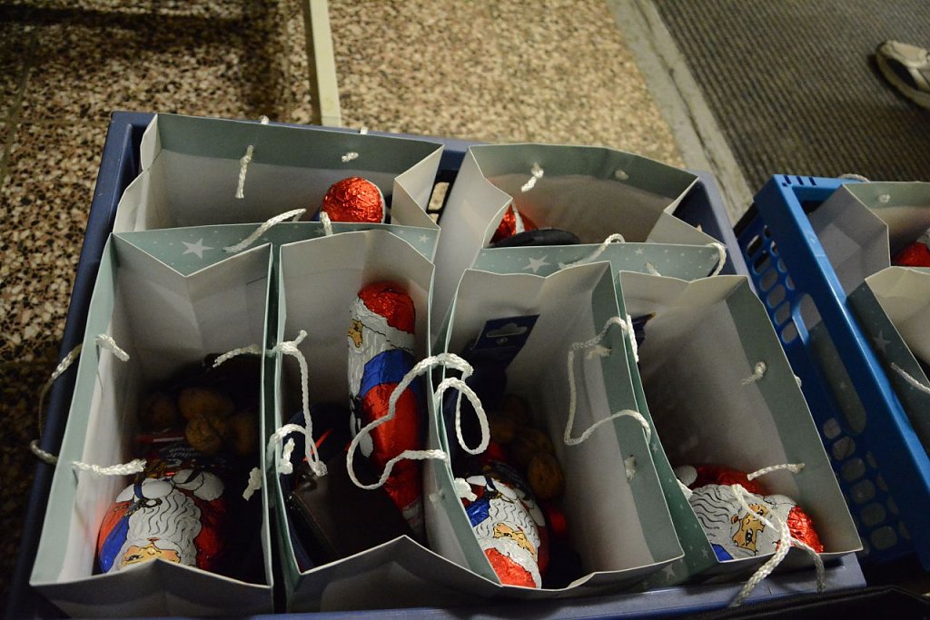 Nach dem Turnier wartete auf die Eritrea noch eine kleine Überraschung. Der Weihnachtsmann hatte sich im Foyer der Turnhalle eingefunden und übergab kleine Präsente. Doch einfach so wollte er ihnen die Geschenke nicht überlassen. Bei der Übergabe musste jeder einen Vers eines deutschen Weihnachtsgedichtes wie "Von einem Schneemann und seiner Frau" vorlesen. Dabei konnte man sehr gut hören, wer schon besonders fleißig beim Lernen der deutschen Sprache ist. Es gaben sich dennoch alle große Mühe beim Lesen und erhielten von den Anwesenden Applaus. Nach drei Stunden voller Spaß und Freude endete der Abend mit einem gemeinsamen Foto.