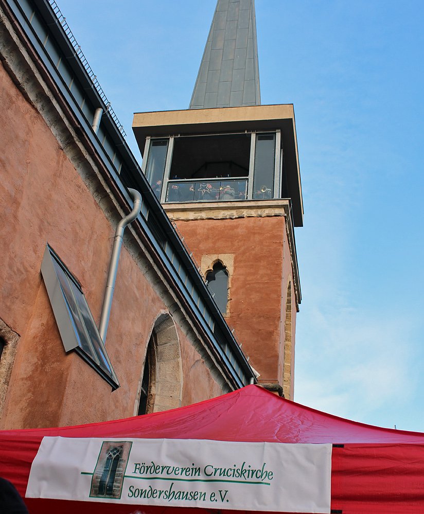 Schon zur Tradition geworden, das Turmblasen des Posaunenchor Sondershausen vom Turm des Bürgerzentrums Cruciskirche. Und viele Sondershäuser kamen um die Klänge von Posaunen und Trompeten zu hören...