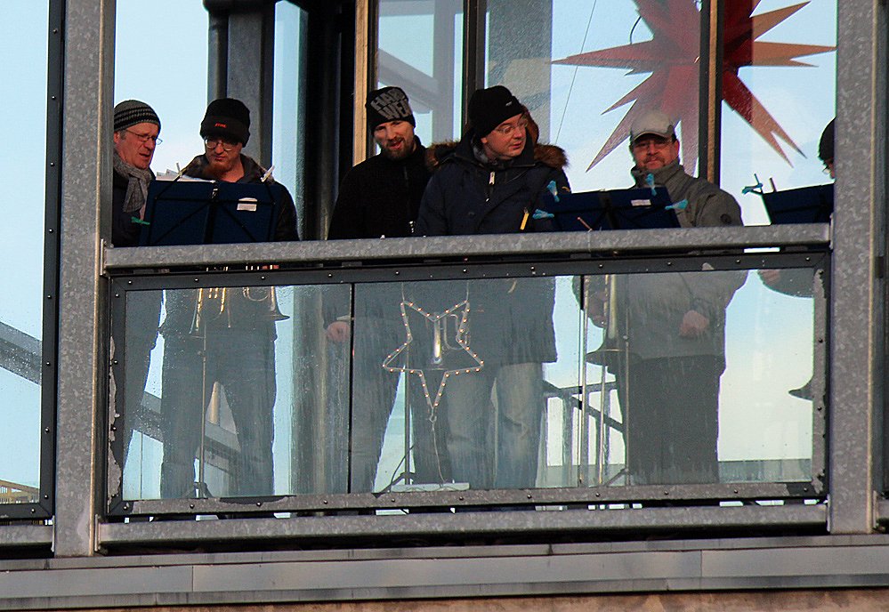 Da leider beim Turmblasen immer einer der Bläser nicht zu sehen ist und die meisten Besucher auch nicht so deutlich sehen, wer eigentlich für die wundervolle Musik verantwortlich ist, hat sich kn nicht nehmen lassen, auf den Turm zu steigen und die Musiker ins rechte an verdiente Licht zu rücken.