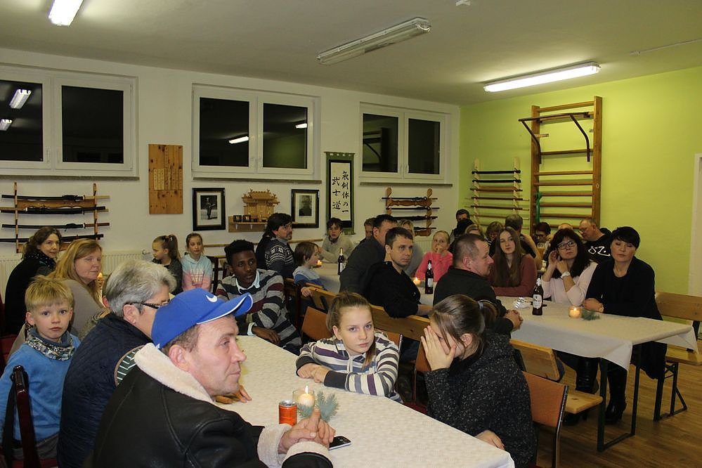 Da auch Weihnachten vor der Tür steht hatte man sich gestern gleich zu einer gemeinsamen Gesamt feier versammelt, so sie pünktlich zum Fototermin da waren. Eine Gruppe die zu spät kam, hatte vorsichtshalber gleich einen Kasten Bier dabei.