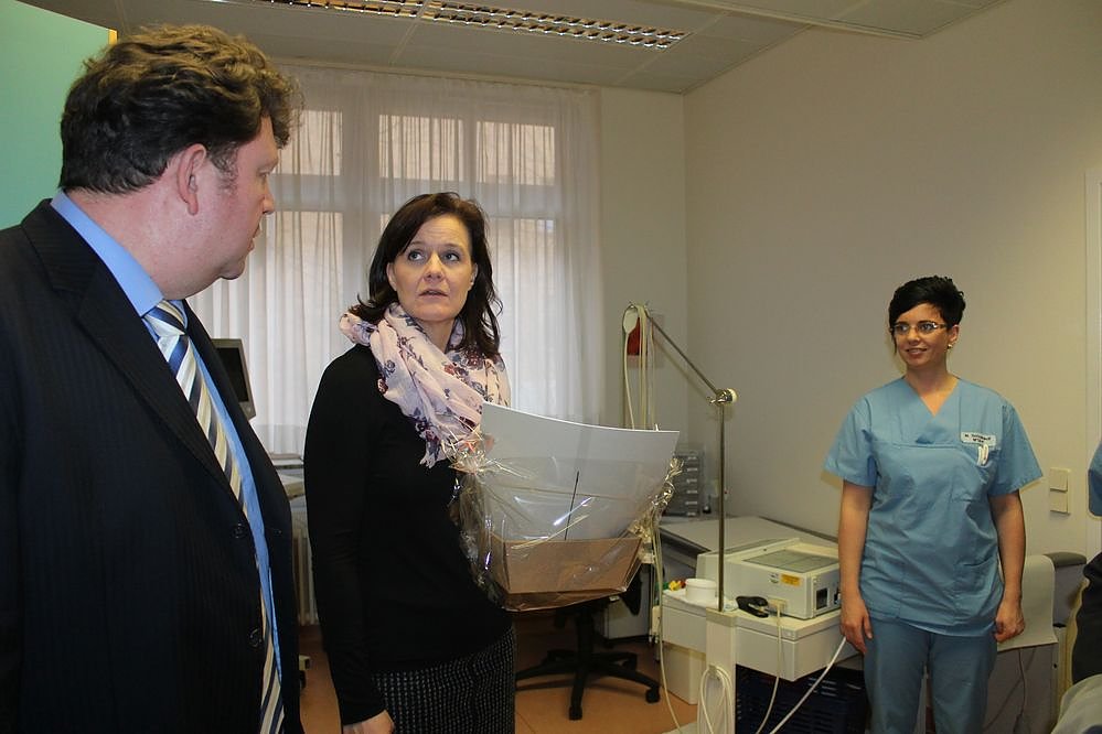 Bei den Besuch einzelner Stationen und Abteilungen, Innere, Physiotherapie und Station 2 kam man auch an einem interessanten Projekt vorbei. Seit 2005 behandelt das Krankenhaus für drei bis fünf Monate ein Kind, das dieses Jahr aus Angola kommt. Koordiniert wird das Ganze von der Aktion "Friedensdörfer.