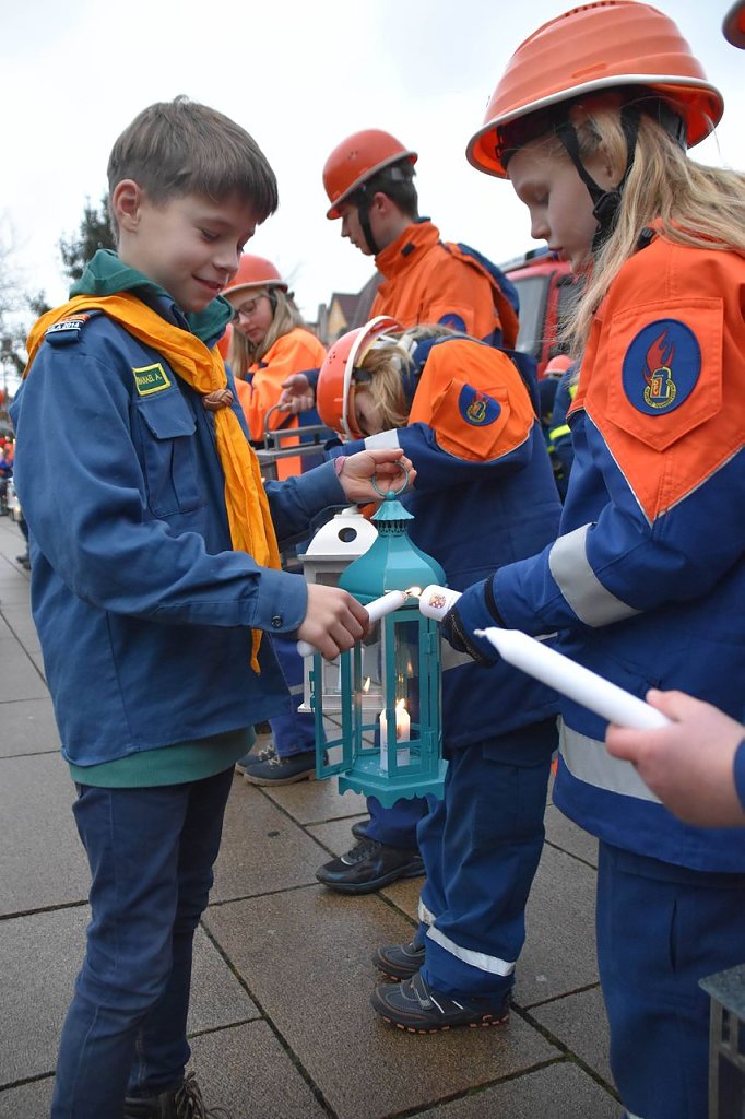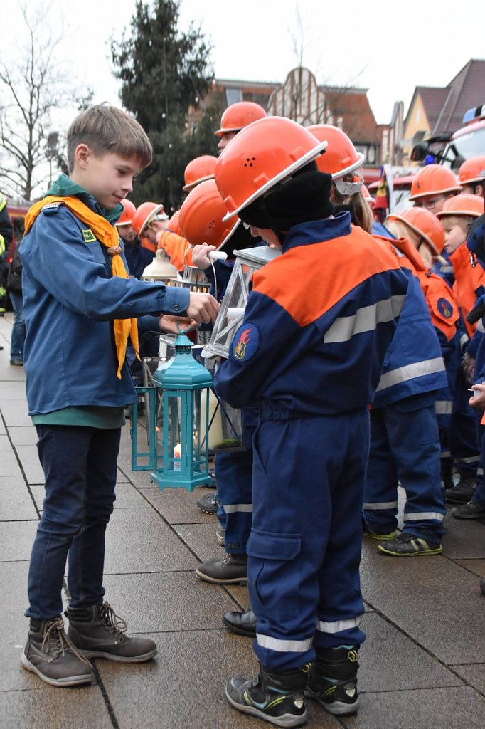 Das ist eine echt schöne Tradition im Landkreis Nordhausen: Seit vielen Jahren wird die Ankunft des Friedenslichtes auf dem Nordhäuser Bahnhofsplatz gefeiert. Nur kommt das Licht nicht mehr - wie in den Anfangsjahren - mit dem Zug, sondern mit einem Feuerwehrauto...