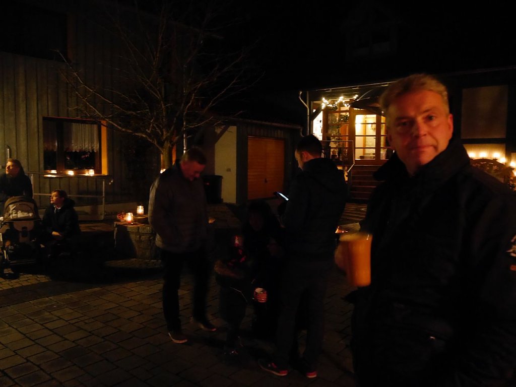 In Niedersachswerfen wurde eingekehrt in den gemütlich, weihnachtlich geschmückten Hof von Familie Zyrus. Bei Punsch, Glühwein, Brezeln, Wurst und Käse klang der Abend aus.
