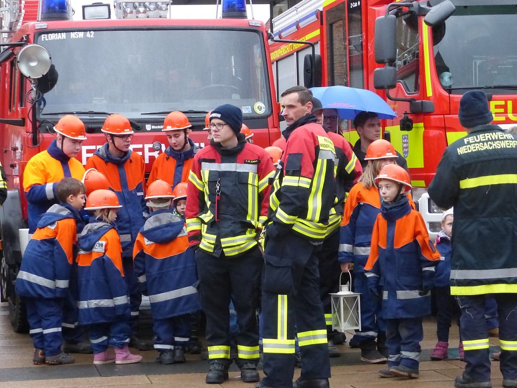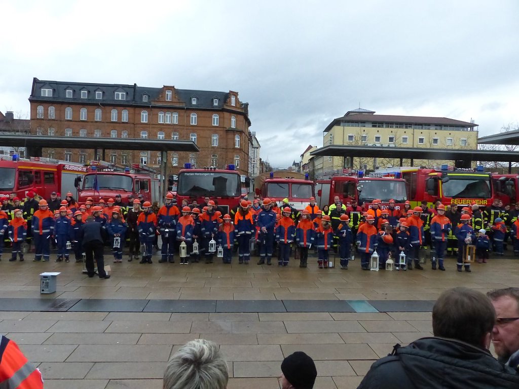 Mit dabei nicht nur politisch Verantwortliche sowie Vertreter von Vereinen und Behörden, sondern auch Eltern oder Großeltern der Floriansjünger. Im Anschluss an die Weitergabe des Lichts werden die Jugendabteilungen der Freiwilligen Feuerwehren wie in den Vorjahren in ihren Heimatgemeinden das Licht in Kirchen, Seniorenheimen und Krankenhäusern verteilen. Die Helfer der Pfadfindergruppe Nordhäuser Grashüpfer" werden wieder das Licht beim Adventskalender am Theater um 17 Uhr verteilen.