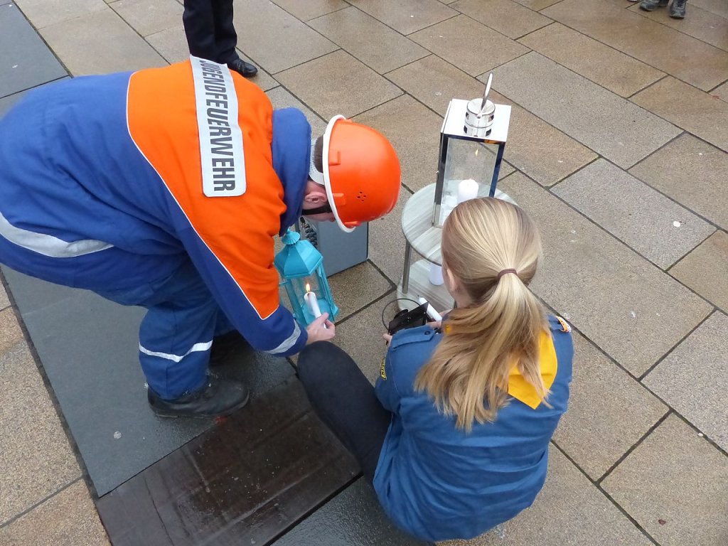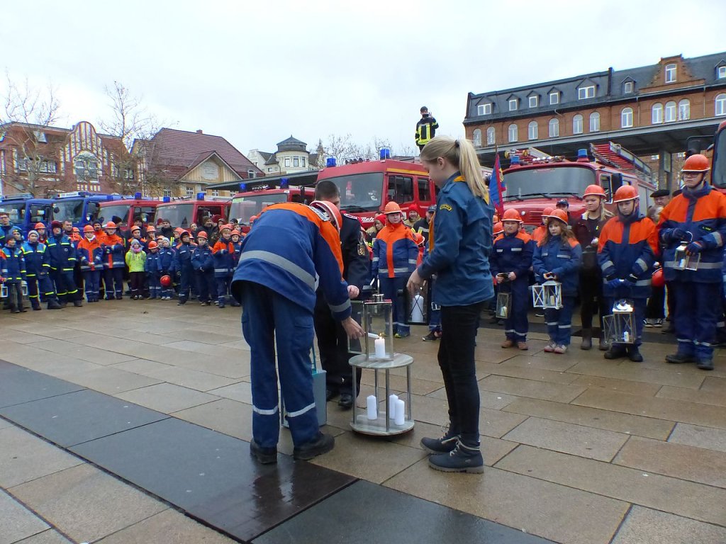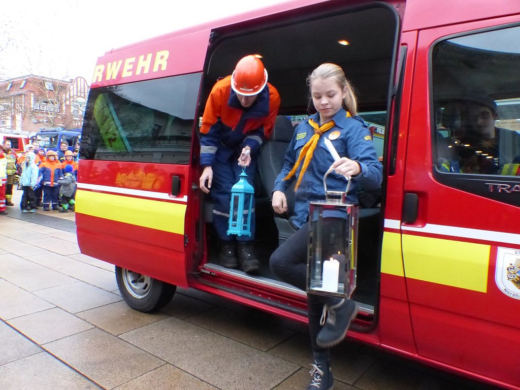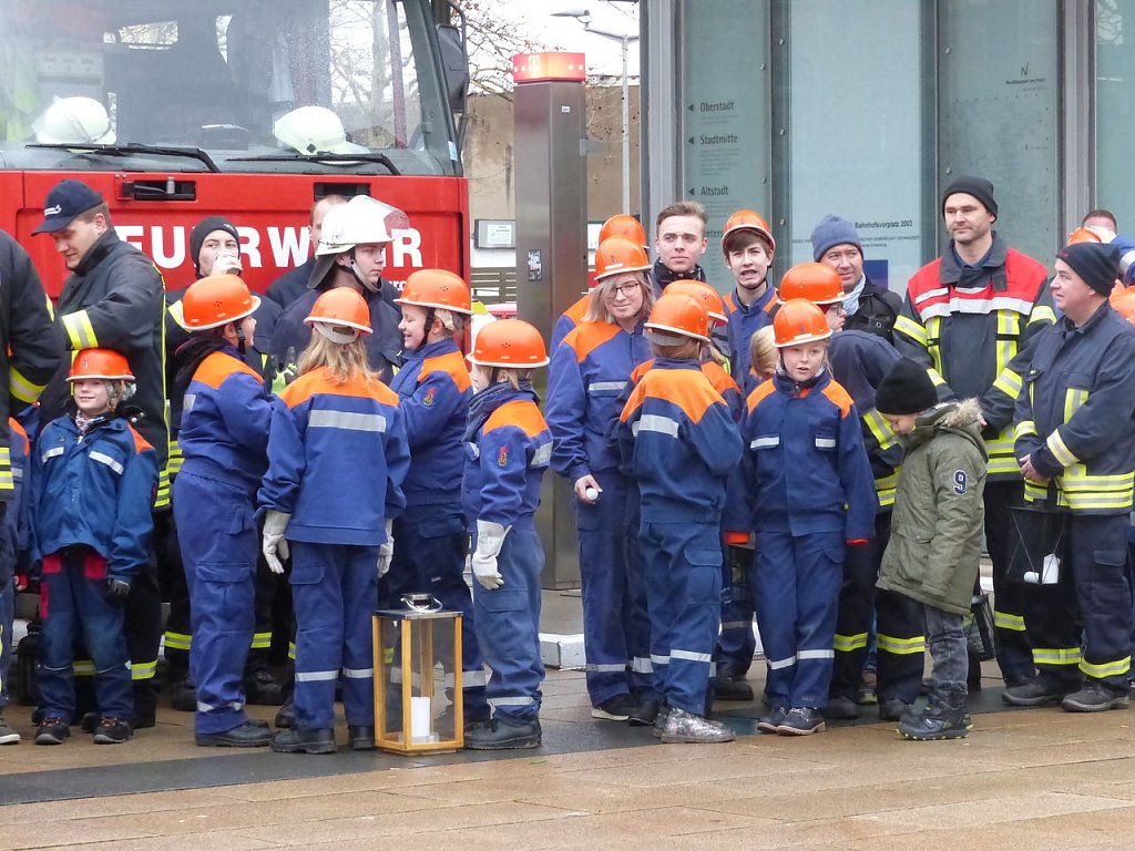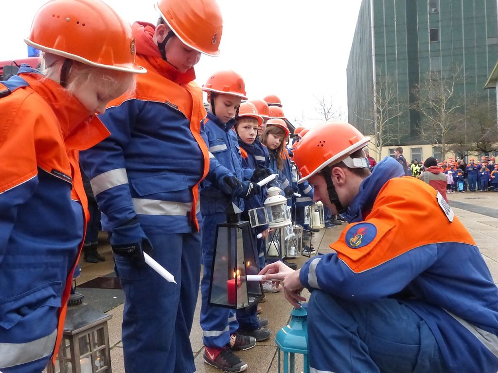 Aus 26 Jugendfeuerwehren hatten sich die Nachwuchsbrandschützer versammelt, um das Licht aus Bethlehem als Symbol des Weihnachtsfriedens an Vertreter aus der Politik, Kirchen, Institutionen, zahlreichen Hilfsorganisationen, Verbände und Menschen des öffentlichen Lebens zu überreichen.