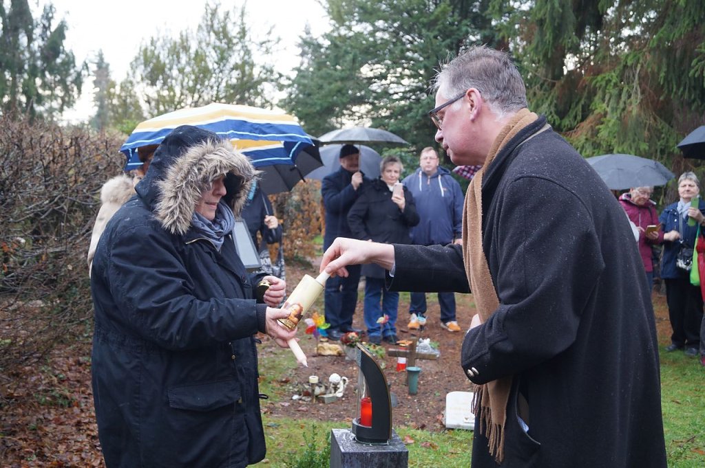 In der heutigen Zeit tun sich immer noch viele Menschen schwer, Verständnis für die Trauer um ein Schmetterlingskind aufzubringen. Es ist nach wie vor ein großes Tabu-Thema. Dabei wünschen sich die Angehörigen nichts mehr, als ein wenig Verständnis, Geduld und weniger Ratschläge. Von einer solch emotionalen Begegnung berichtete Herr Titulaer in seiner Rede, als er ein junges Paar beim Abschied ihres Kindes in diesem Jahr begleitete. Wir wollten an seiner Wiege stehen, nicht an seinem Grab – so formulierten es die jungen Eltern.