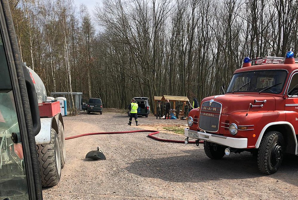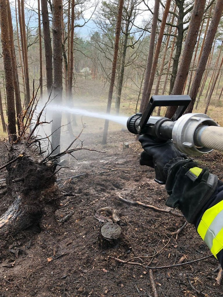 Gemeinsam mit Helfern der Bundeswehr, dem Revierförster und einem landwirtschaftlichen Unternehmen, welches schnell und unkompliziert 20.000 Liter Wasser zur Verfügung stellte, wurden die Flächenbrände eingedämmt und gelöscht.