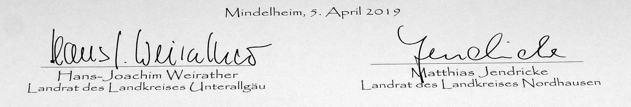 Im Anschluss wurden die beiden Partnerschaftsurkunden von den Landräten aus Nordhausen und Mindelheim unterschrieben.