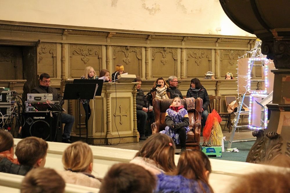 Aber nicht nur gesungen wurde. Aufgeführt wurde von den Schülerinnen und Schülern die Weihnachtsgeschichte, musikalisch unterstützt von Band & Chor glaubhaft