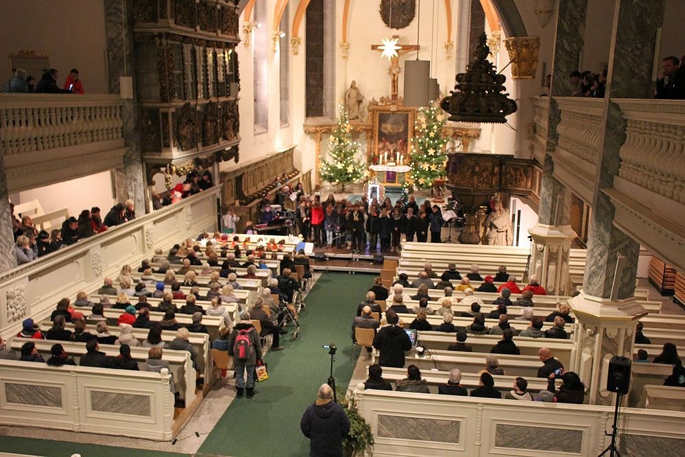 Wegen des Benefizkonzerts wurden beide Aufgänge der Trinitatiskirche festlich beleuchtet. Mit einem Gebet von Pfarrer Karl Weber fand dieses Benefizkonzert seinen Abschluss.