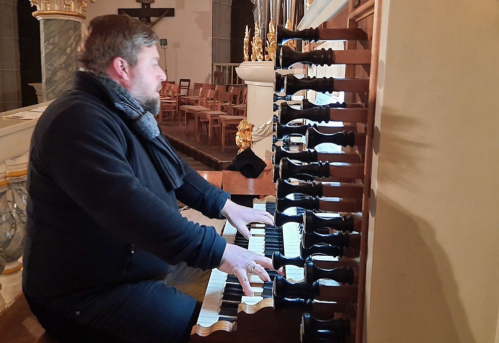 Kreiskantor Andreas Fauß spielte auf der großen Hey-Orgel das vermutlich berühmteste Orgelwerk überhaupt, die Toccata und Fuge d-moll von J.S. Bach; außerdem werden Werke von Franck, Vierne und Widor zu hören sein.