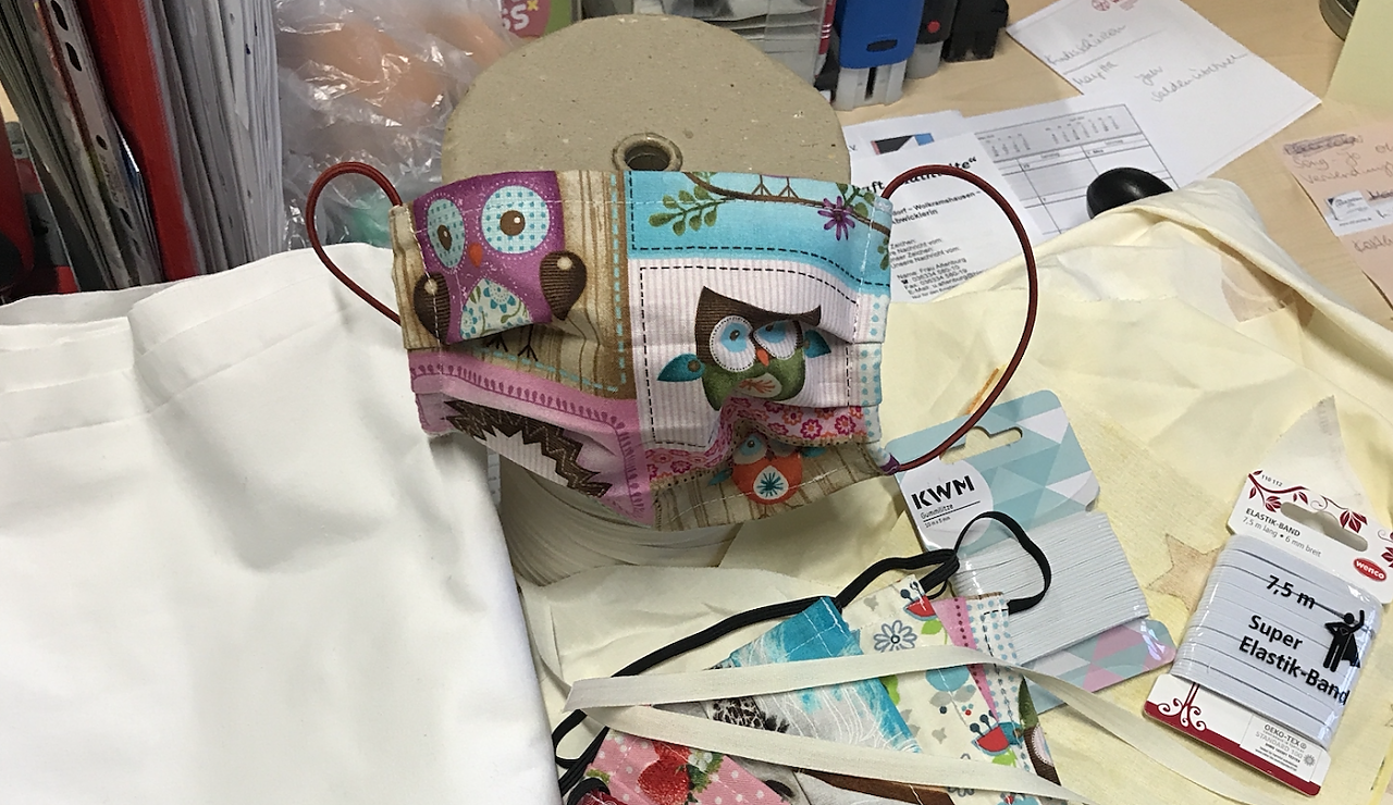 Die fertigen Masken – oft aus bunten farbenfrohen Baumwollstoffen – werden dann von den Mitarbeiterinnen an Einrichtungen wie Arztpraxen oder Pflegedienste gespendet. Wir wissen, dass Baumwollmasken keinen absoluten Schutz vor Ansteckung bieten. Aber überall dort, wo Menschen sich trotz Kontaktverbot nah kommen – zum Beispiel im Wartezimmer beim Arzt – können sie helfen, Ansteckungen zu vermeiden.