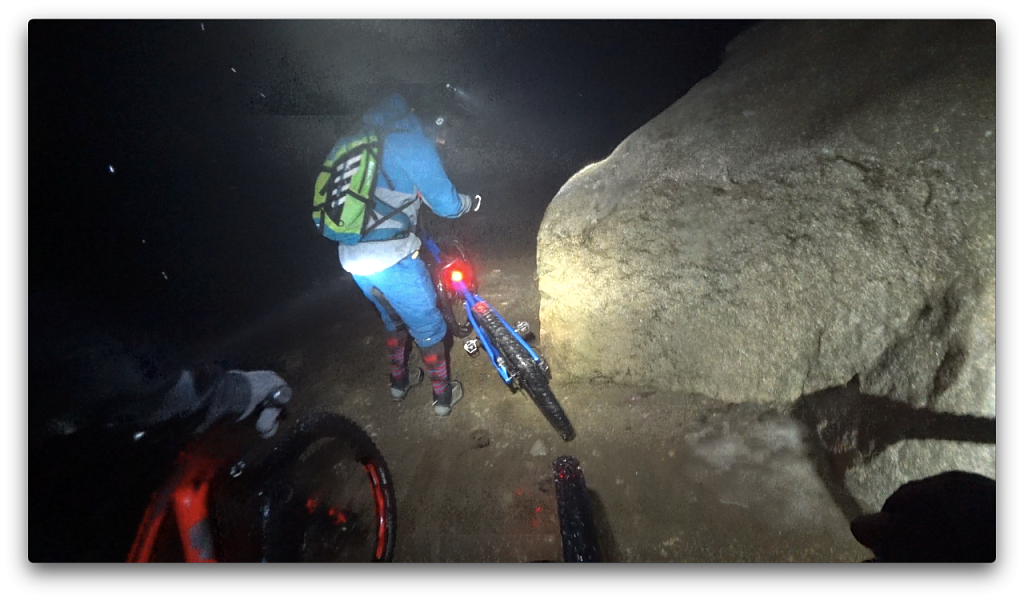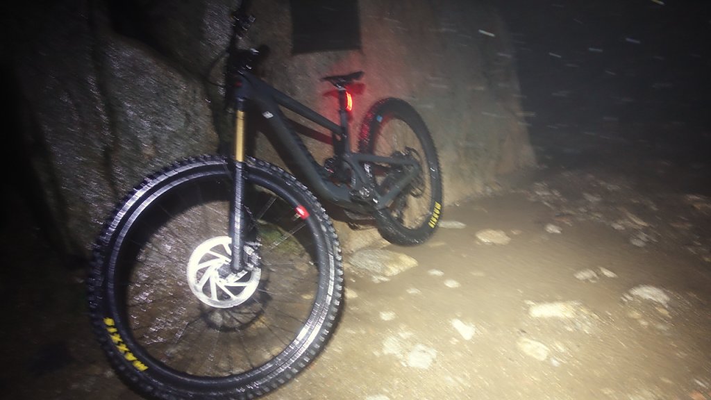 Oben stürmte es heftig und wir konnten uns kaum auf den Rädern halten. Zusammen mit dem leichten Regen, den eisigen Temperaturen und der Dunkelheit war es eine neue Erfahrung auf dem Bike. Ich weiß, wovon ich rede. Nach 18 Alpenüberquerungen habe ich schon einiges mit meinem Fahrrad er- und überlebt. Keine Ahnung, ob der Wind wirklich mit den vorhergesagten 103 Stundenkilometern blies, gefühlt, würde ich sagen ja.