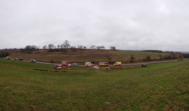Am Auto entstand Totalschaden. Zum Einsatz kamen mehrere Feuerwehren, Notarzt, zwei Rettungswagen und der Rettungshubschrauber.
