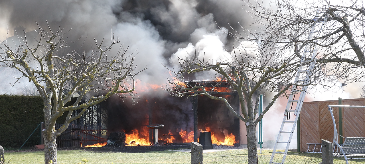 Hier war aus bisher ungeklärten Gründen eine Doppelgarage in Brand geraten. In der Garage befand sich auch ein Neuwagen. Das gerade mal einen Monat alte Fahrzeug wie auch die Garage brannten völlig aus. Das nahe Wohnhaus blieb dank günstigen Windverhältnissen verschont. Der entstandene Sachschaden wird auf 50.000 Euro geschätzt, verletzt wurde niemand. Ein technischer Defekt am Auto in der Garage kann derzeit nicht ausgeschlossen werden.