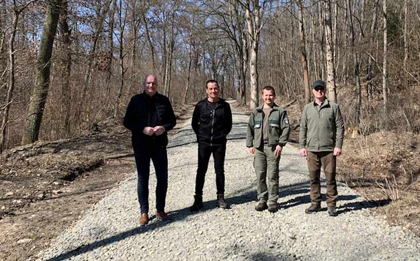 von links nach rechts: Bürgermeister Steffen Grimm, Fachgebietsleiter Liegenschaften der Stadtverwaltung Sondershausen Uwe Pforr, Revierleiter Marcel Raube (Forstamt Bleicherode-Südharz), stellv. Forstamtsleiter Knut Apel (Forstamt Bleicherode-Südharz) (Foto: Stadtverwaltung Sondershausen)