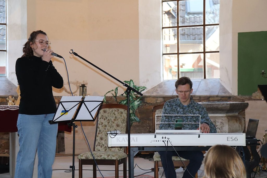 Nur 2,5 Wochen liegen zwischen Idee und Konzert. Aber was wurde nicht alles organisiert, vorbereitet, geplant in dieser kurzen Zeit. Immer mehr Musikerinnen und Musiker springen auf, wollen sich beteiligen, wollen ihre Anteilnahme und Solidarität zeigen. Am Ende sind es nicht nur Kinder und Jugendliche, die musizieren, sondern Menschen aller Generationen. Die Stimmen der Kindergartenkinder der Kita Wolkramshausen, des spontan gegründeten Familienkirchenchors aus Bielen füllen den Raum ebenso, wie Trompeten und Posaunen, Klavier, Geige oder solistischer Gesang.