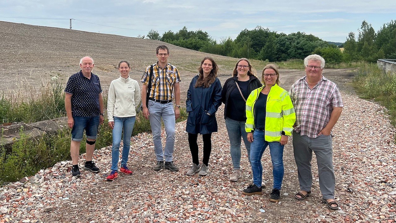Die Verbundpartner vor der CarboMass-Testfläche an der Kalihalde Sollstedt (Foto: IMM Sollstedt GmbH)