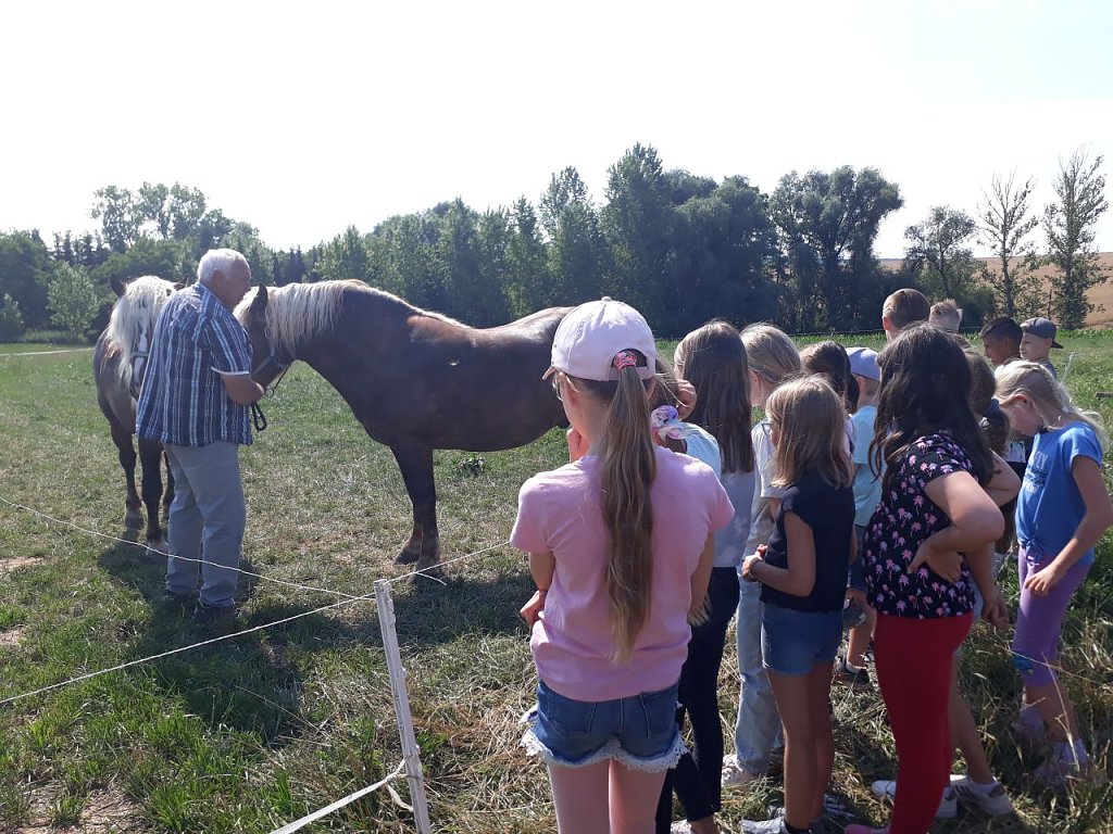 Viel Spaß hatten die Kinder beim Anschauen der vielen Bauernhoftiere, die sie vorher im Heimat- und Sachkundeunterricht kennengelernt hatten. Interessant war der Legestall seiner vielen Hühner. Begeistert waren die Kinder auch von seinen Pferden.