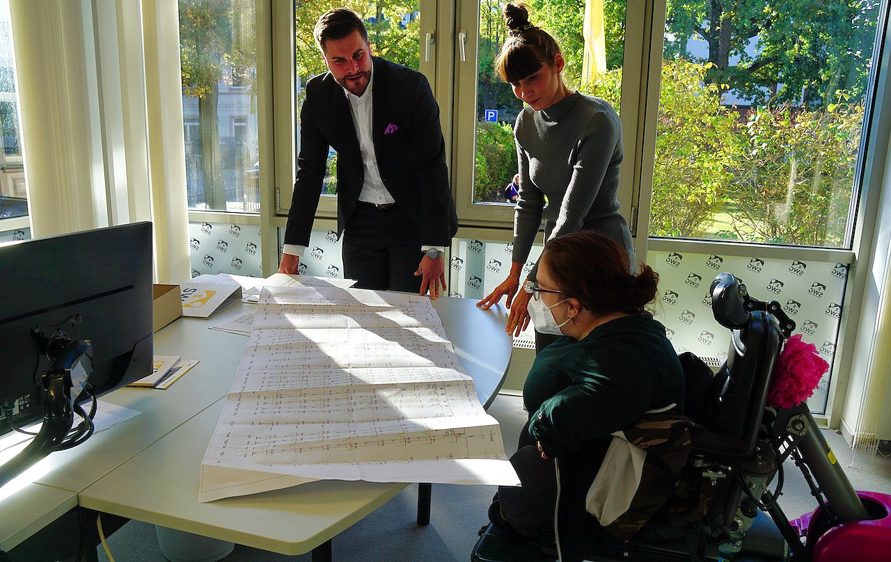 Für uns war es eine Herzensangelegenheit bei diesem Tag mitzumachen. Es ist für uns alle eine ganz neue Erfahrung, Rollstuhlfahrer unter den Kollegen zu haben, sagte SWG-Chefin Inge Klaan. Stefanie Brock, die eine kaufmännische Ausbildung hat und demnächst in einem Mehrgenerationenhaus in Sülzhayn an der Rezeption arbeiten wird, lernte die Wohnungswirtschaft und die Arbeit am Besucherempfang kennen. Dirk Hamel hospitierte als gelernter Industriekaufmann in der Buchhaltung des Wohnungsunternehmens.