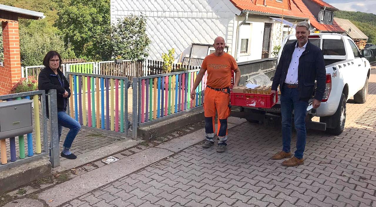 Am Donnerstag haben Harztor-Bürgermeister Stephan Klante, Bauhofchef Tino Scharfe und Bauhofmitarbeiter Mario Schmidt frischgemosteten Apfelsaft an die vier Kindertagesstätten in Harztor verteilt...
