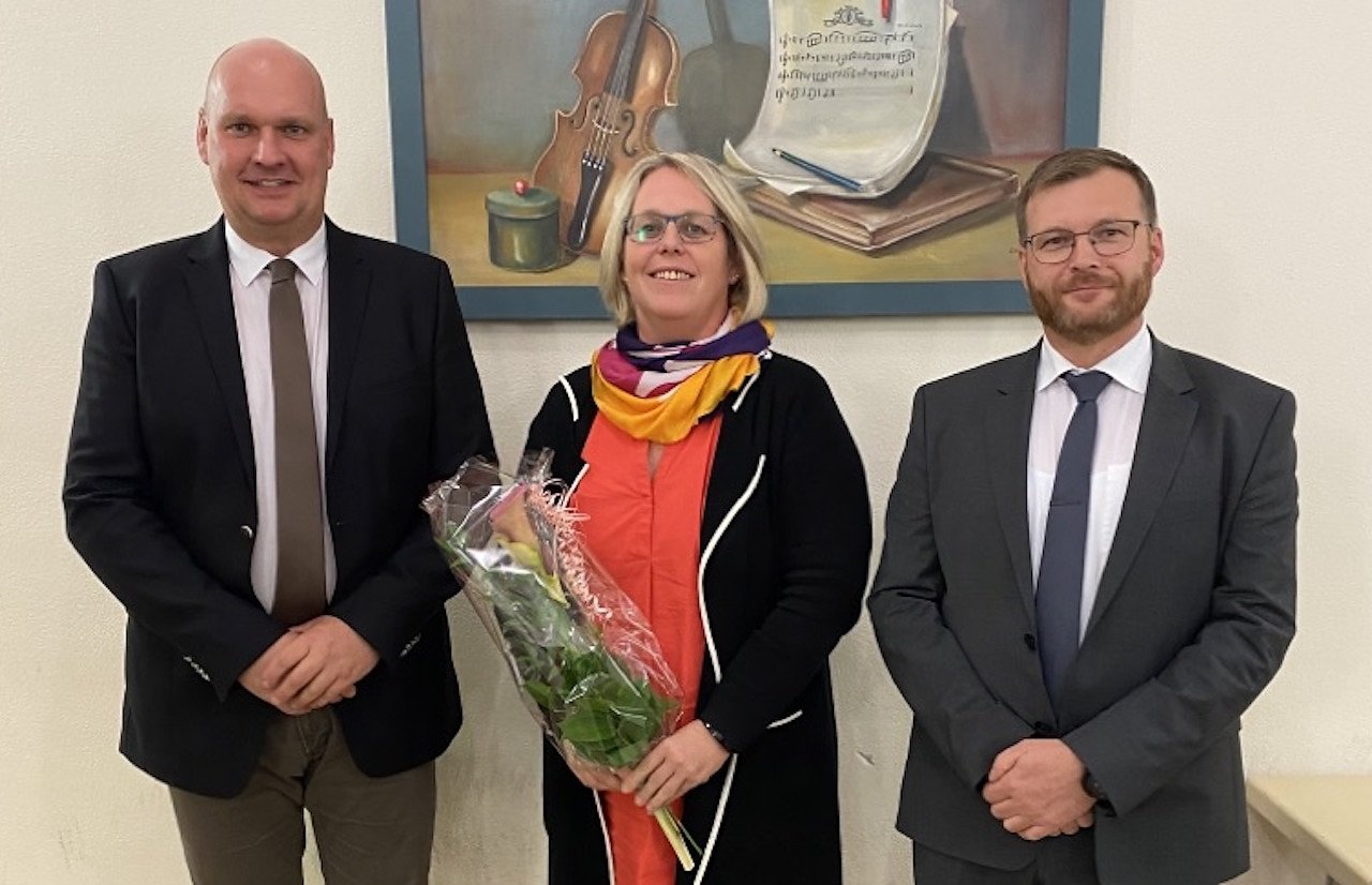 Bürgermeister Steffen Grimm (li.) und Stadtratsvorsitzender Daniel Pößel (re.) hießen Dagmar Sonneck als neues Mitglied im Stadtrat Willkommen (Foto: Janine Skara)