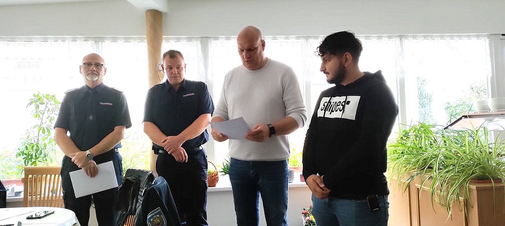 Der Stadtbrandmeister Markus Pößel hat lobenswert erwähnt, dass die Freiwillige Feuerwehr Sondershausen Jecha die erste Wehr ist, die zwei Immigranten hat und diese voll und ganz integriert sind. Das erkennt man daran, dass sie aktiv teilnehmen. So hat in kürzester Zeit Mohamad Abo Alkheer seine Ausbildung zum Feuerwehrmann absolviert.