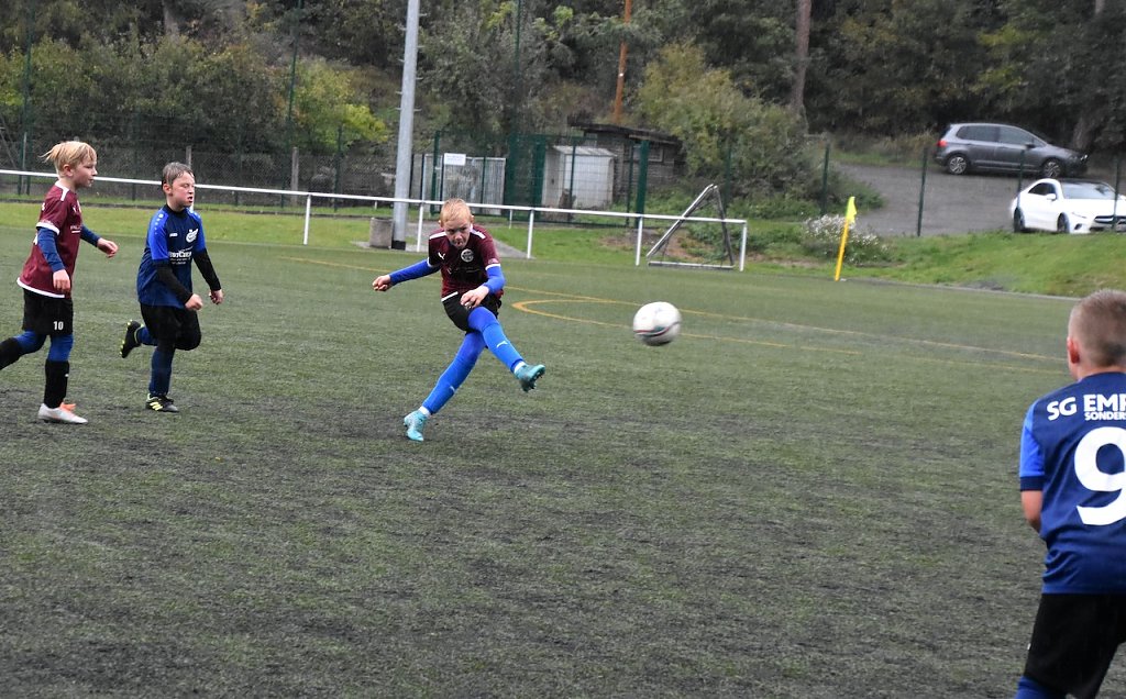 Von Beginn an bestimmten die Wacker-Kids das Spielgeschehen, drückten die Sondershäuser in ihre Spielhälfte, die sich dann in ihrem Strafraum aufbauten. Zu umständlich operierten die Wackerspieler, liefen sich immer wieder im Zentrum fest oder die Schüsse verfingen sich in der dichten Abwehr bzw. verfehlten das Tor. In der 6. Minute dann doch die Führung. Oskar Weise setzte sich rechts durch und sein Rückpass vollendete Finn Pitulle sicher zum 1:0.
