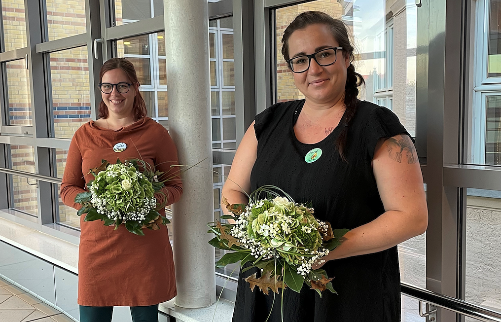 Claudia Weber (links) und Anne Haese verstärken seit September 2022 das Team im Sangerhäuser Kreißsaal (Foto: Helios Kliniken Mansfeld-Südharz GmbH | Antonia Bütof)