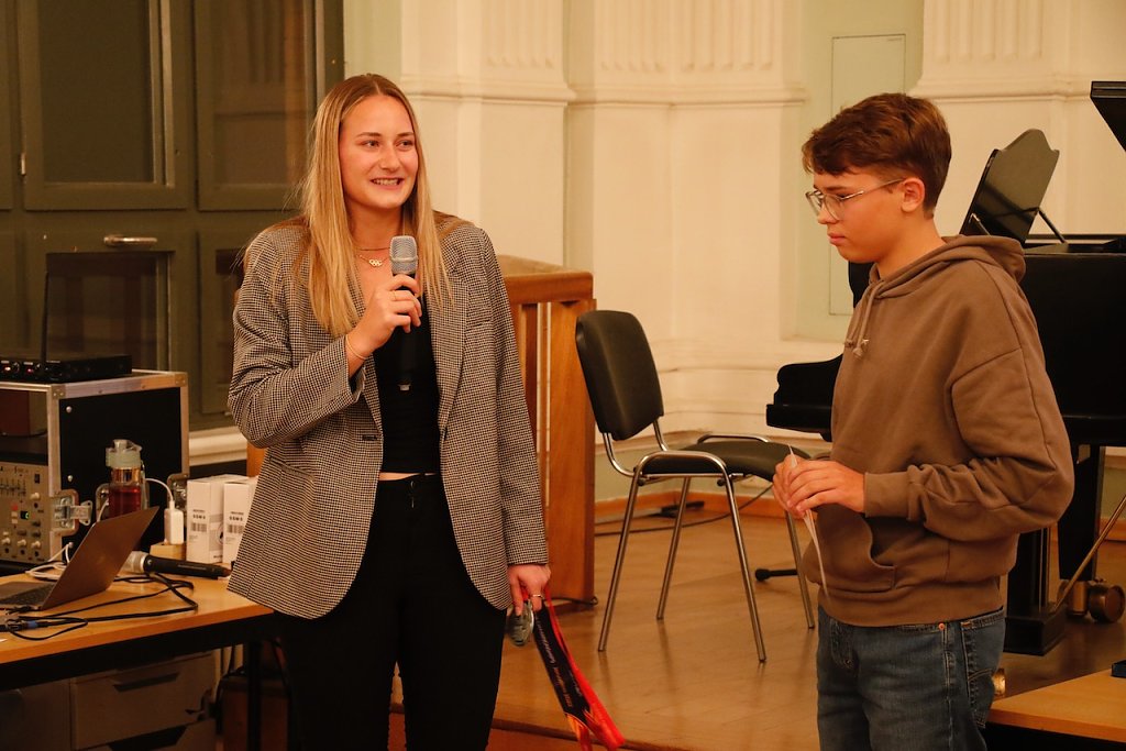 Zwischen den Auszeichnungen fokussierte sich man auf den zweiten, künstlerischen Teil des Abends. Der Wiederrum stand ganz im Zeichen des Friedens. An der Schule hat man sich seit Beginn des Ukraine-Krieges immer wieder mit dem Thema auseinandergesetzt und versucht eigene Zeichen zu setzen.