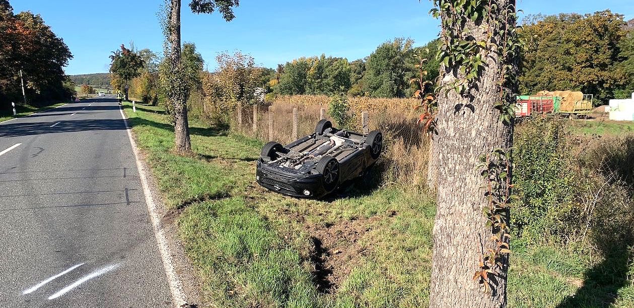 Beim Ausweichversuch kam er erst nach links und dann nach rechts von der Fahrbahn ab durchfuhr den Straßengraben und überschlug sich anschließend mit seinem Fahrzeug.