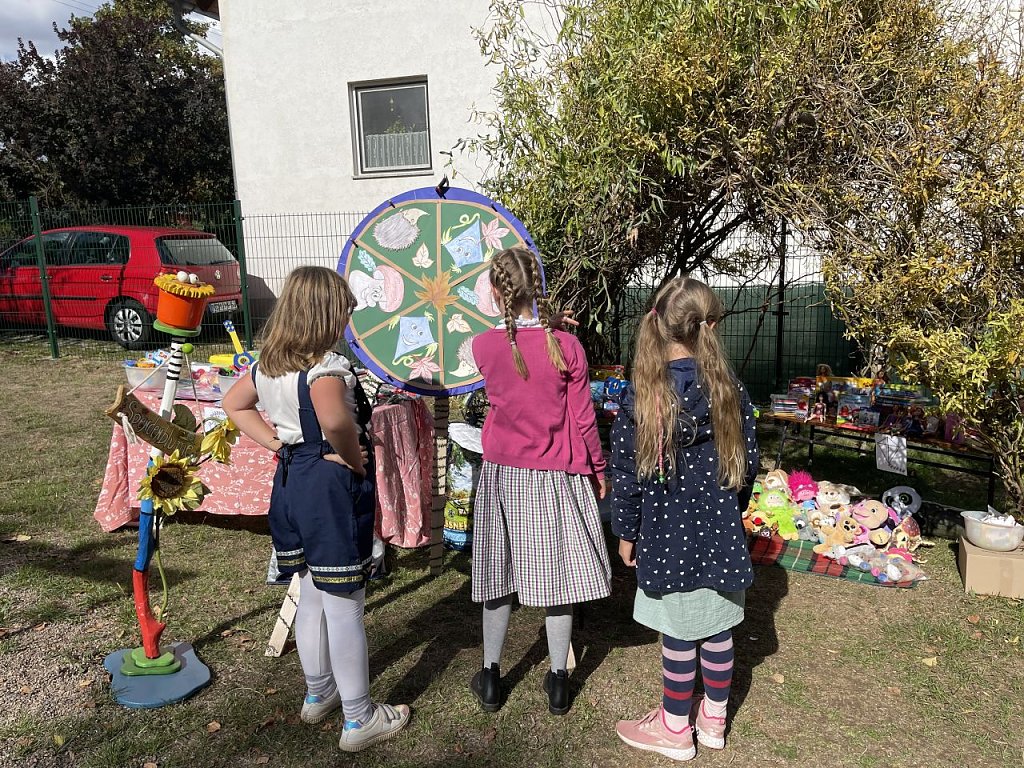 So sangen alle gemeinsam unter anderem die herbstliche Hymne Hüttenzauber auf der Alm. Anschließend konnten Groß und Klein an mehreren Stationen ganz viel Spaß haben. Der Tag ließ nichts zu wünschen übrig. Neben Bierkrug-Stemmen, Kinderschminken und Glitzer Tattoos konnten sich die Kinder mit aufblasbaren Spaßrollen über den Rasen kullern und auf der Hüpfburg Action erleben. Für die kreativen Köpfchen gab es eine Mal- und Bastelstation. Ein ganz besonderes Highlight stellte das Glücksrad dar.