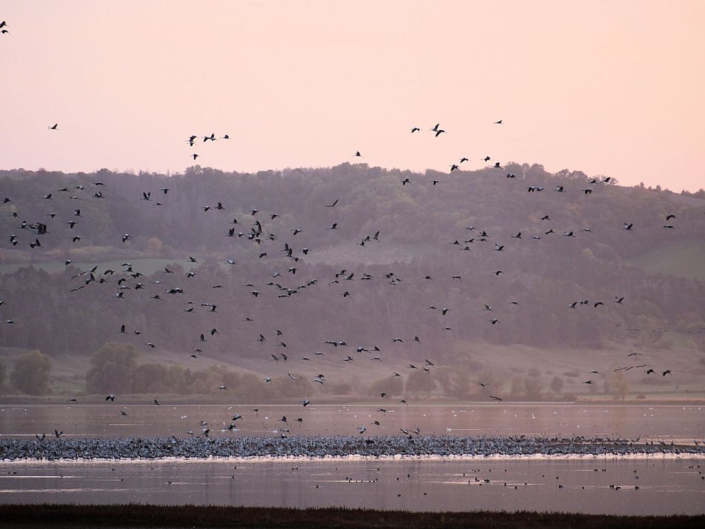 Peter Blei unterwegs Peter und die Kraniche Unser Fotograf Peter Blei ist ja ohnehin ein großer Freund des Kelbraer Stausees. Im Moment weilen dort wieder die gefiederte Gäste auf ihrer Durchreise gen Süden und die haben es Peter besonders angetan...