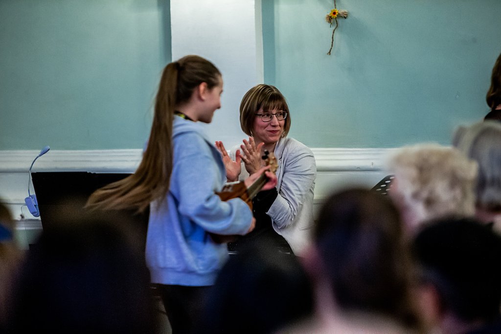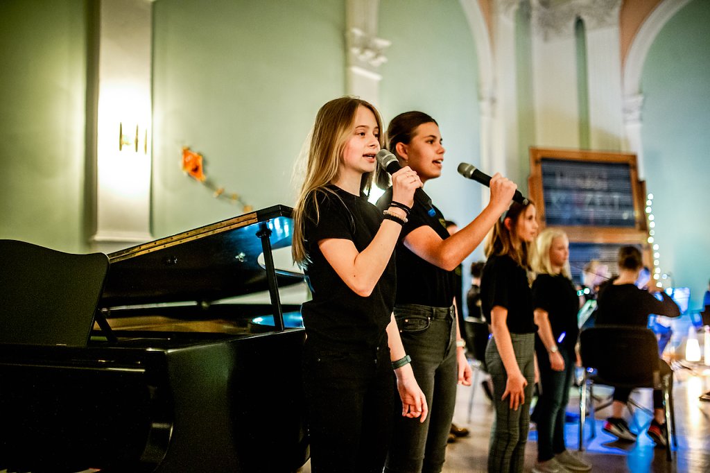 Das Programm, welches durch die Musikkurse Klasse 12 nicht nur organisiert, sondern auch moderiert und mitgestaltet wurde, hatte viele Highlights zu bieten. Neben den kleinsten Schülerinnen und Schülern im Humboldt-Ensemble oder an der Ukulele, gaben viele Instrumentalisten und Sänger aus allen Jahrgangsstufen ihr Können zum Besten.