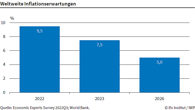 Ihre Inflationserwartungen für 2022 sind im Vergleich zum zweiten Quartal noch einmal deutlich um 1,8 Prozentpunkte gestiegen, sagt ifo-Forscher Niklas Potrafke. Auch für die kommenden Jahre sehen die Teilnehmenden nun höhere Inflationsraten. Für die abgefragten Jahre 2023 und 2026 erwarten sie weltweit 7,5 Prozent und 5,0 Prozent.