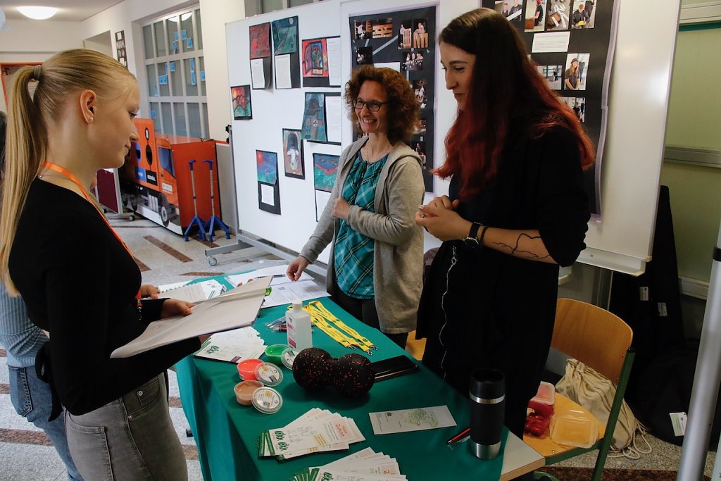 So hat sich zum Beispiel Zehntklässlerin Hermine vom Humboldt-Gymnasium vorgenommen, ihre Arbeit zum Thema Kindesmisshandlung zu verfassen. Freundin Ida spielt mit dem Gedanken, Psychologie zu studieren und will auch ihr Seminarfach darauf ausrichten, hat aber noch kein konkretes Thema parat. Beide sind am Tisch des Kreisjugendrings bei Anja Barth und Sandra Ziegler-Koch gelandet, die sich als Träger der Jugendarbeit sowohl mit Kindeswohlgefährdung auskennen als auch über diverse Kontakte verfügen.