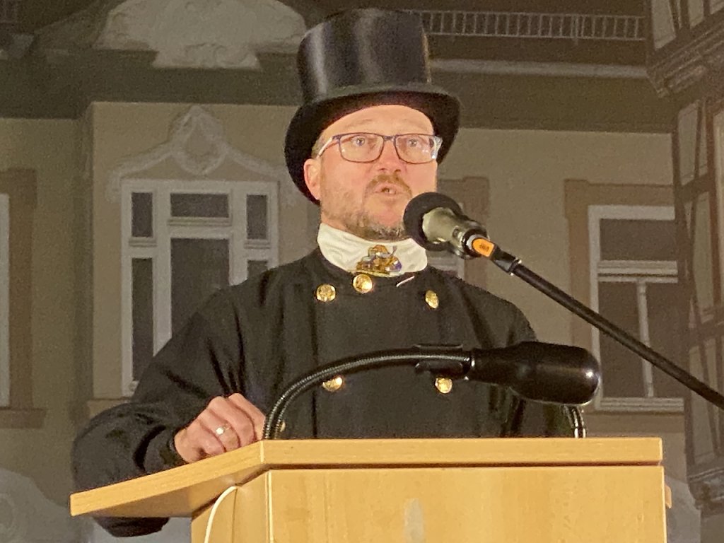Dritter Redner war heute der Bezirksschornsteinfegermeister Rüdiger Speck, der in zehn Jahren seiner Amtszeit schon sechs Lehrlinge ausgebildet hat und sich nichts mehr von Leuten erzählen lassen will, die über zehn Jahre studiert haben, ohne einen Abschluss erworben zu haben. Sein Thema war jedoch ein fachliches: die immer gefragter werdenden Brennstoffe und der Umgang damit. Nicht jedes alte Brett sei auch guter Brennstoff und den Ofen vollzustopfend und schnell zu schließen, damit er die Wärme halte, sei ebenfalls kein probates Mittel. Er warnte und riet zu sorgfältigem und durchdachten Einsatz der Brennstoffe und bot Hilfe und Unterstützung an, damit es möglichst nicht zu Schornsteinbränden oder anderen Katastrophen komme. Rüdiger Speck versicherte aber auch, er werde mit seinen Mitteln weiter kämpfen, dass es wieder gerechter zugehe in unserer Gesellschaft.