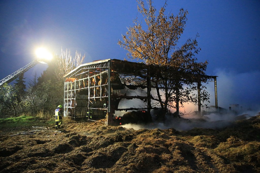 Da Löschmaßnahmen nicht mehr umzusetzen waren, wurde durch die Feuerwehr entschieden, dass die Scheune kontrolliert abbrennen muss. Der Schaden an Gebäude und den Heuballen darin, wird derzeit mit ca. 30000 Euro beziffert. Die Polizei hat erste Ermittlungen übernommen, Hinweise zur Brandursache lagen noch nicht vor.