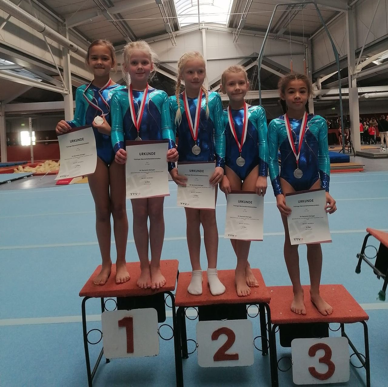 Und am Ende gab es wieder eine Riesenüberraschung und unbändige Freude: In der Mannschaftswertung gewannen die Mädchen die Silbermedaille. Damit hatten weder die Turnerinnen noch ihre Trainer gerechnet.