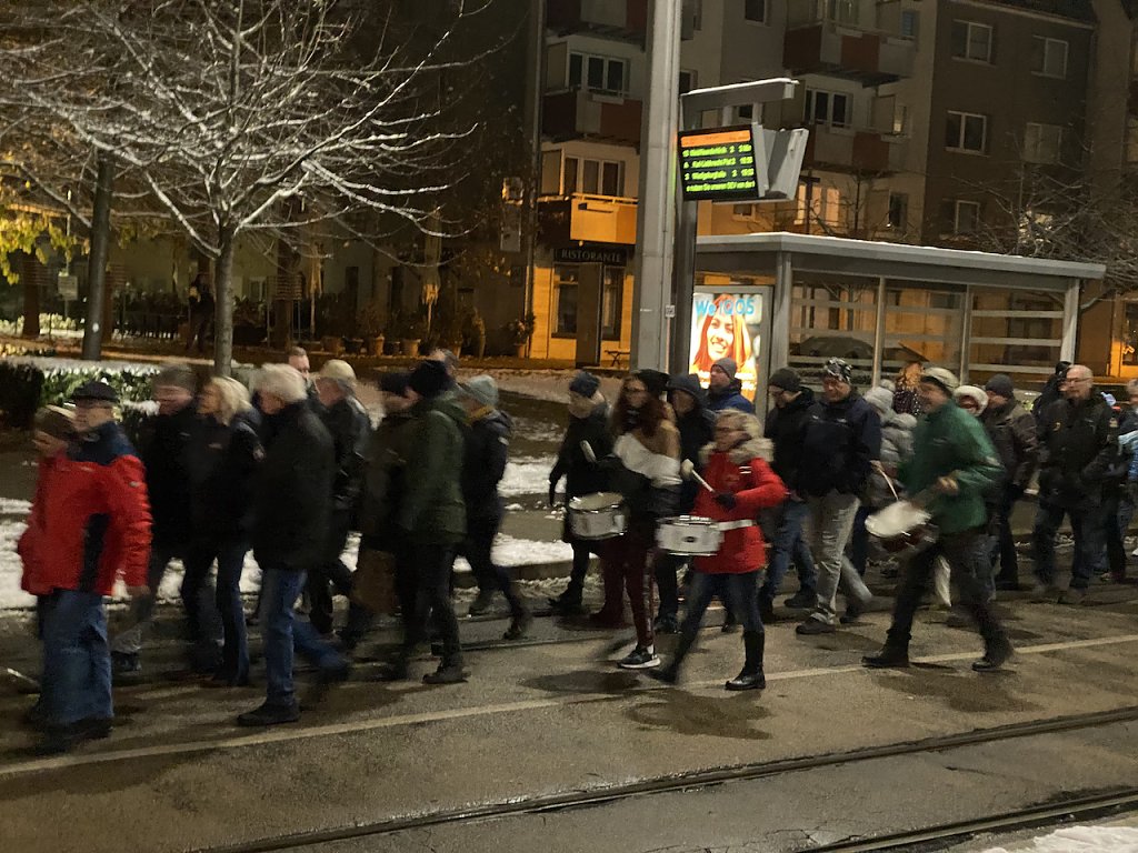 Auch in den nächsten vorweihnachtlichen Wochen wollen die Kritiker der Regierungspolitik weiter auf der Straße aktiv bleiben. In der nächsten Woche können sie sich dann schon vor und nach ihrem Marsch auf dem Weihnachtsmarkt mit einem Glühwein stärken und wieder aufwärmen.