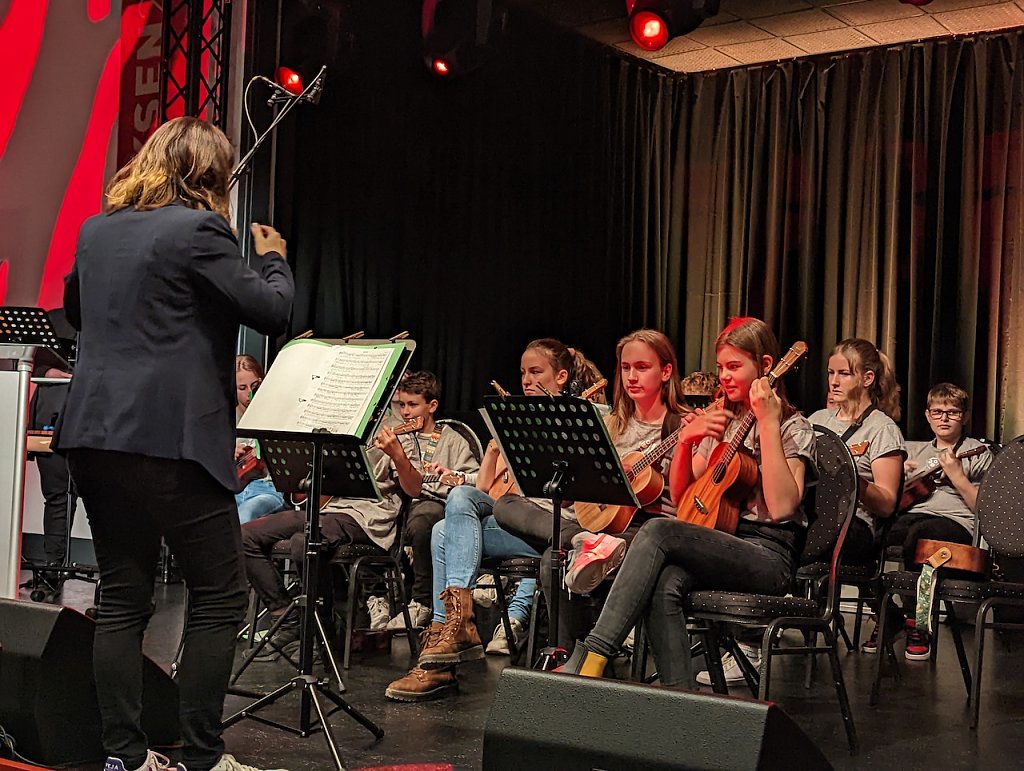Nach einem musikalischen Auftakt durch Schüler der Franzbergschule, die unter Leitung von Carolin Özbek und gesanglicher Unterstützung von Sandra Widdra im Rahmen ihres Projektes Ukulele trifft Popmusik" auftraten, begrüßte Bürgermeister Steffen Grimm die Gäste.