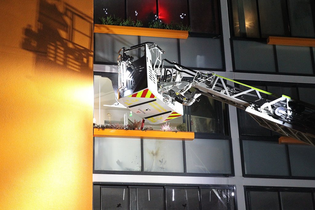 Hier sollte nach der Erstmeldung ein Wohnungsbrand sein. Beim Eintreffen der Einsatzkräfte konnte ein Feuer auf dem Balkon der entsprechenden Wohnung ausgemacht werden. Mittels Drehleiter wurden der Erstangriff und die Brandbekämpfung durchgeführt. Drei Trupps unter Atemschutz waren insgesamt im Einsatz.