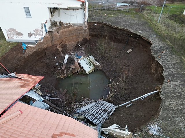 Sechs Jahre später, am 19. Februar 2016, zerstörte ein sogenannter Nachbruch zu diesem Erdfall mit einem Durchmesser von 20 Meter und einer Tiefe von 13 Meter Teile eines Verwaltungsgebäudes und einer Fahrzeughalle. Der Erdfall ist seitdem nicht verfüllt worden und die beschädigten Gebäude wurden aus der Nutzung genommen. Bei einem weiteren Nachbruch im März 2021 wurde der Erdfall nochmals seitlich erweitert, wodurch die verbleibenden Gebäude teilweise beschädigt wurden und in das Loch nachgestürzt sind.