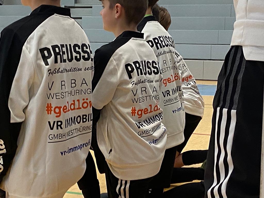 Die Preußen bedanken sich bei den Sponsoren. Ein großes Dankeschön geht ebenfalls an Intersport Schenk Bad Langensalza, wo die schicken Anzüge des Nachwuchsausrüsters Joma wieder zuverlässig und schnell beflockt wurden. Wir werden die Logos der Firmen neben dem Vereinslogo mit Stolz tragen, versprachen die jungen Fußballer, die nun bei jedem Heim- und Auswärtsspiel einheitlich auftreten können.