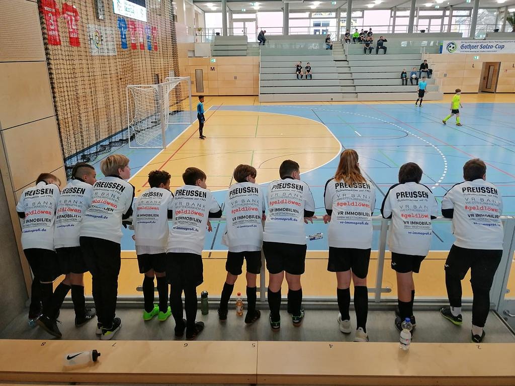 Alle drei Jahre versucht der Fußballverein mit seinen Sponsoren dieses Ziel umzusetzen, da die Kinder natürlich aus den Sachen raus wachsen, wie es von Vereinschef Benno Harbauer zur Begründung hieß. Zur Übergabe bei den E-Junioren während des Salza-Cups Ende Dezember waren auch der Vorstand der VR Bank, Mario Werneburg und der Geschäftsführer der VR Immobilien, Alexander Ernst zu Gast in der Salza-Halle. Eine weitere Übergabe wird noch beim Möbelhaus Knappstein in Bad Langensalza erfolgen.