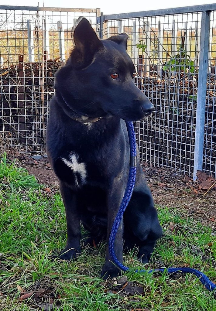 Bei dem Hund handelt es sich um einen männlichen schwarzen Schäferhund/-Mix.