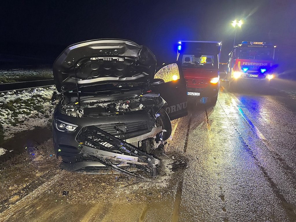 Bei dem Unfall wurden der 72-jährige Fahrer sowie die 66-jährige Beifahrerin leicht verletzt. Sie wurden zur weiteren Abklärung in das Südharz Klinikum gebracht. Am Fahrzeug entstand ein Sachschaden von mindestens 15.000 Euro. Unfallursächlich, so die Polizei, war die den Witterungsverhältnissen nicht angepasste Geschwindigkeit. An der Unfallstelle kam es während der Unfallaufnahme und Erstversorgung zu einer kurzzeitigen Vollsperrung.